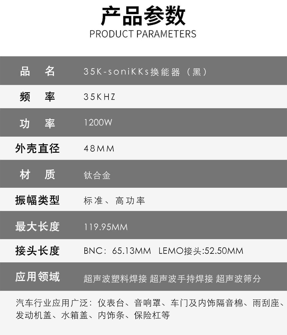 超声波焊接头在超声波焊机中的应用是一个非常重要的组成部分 ,在人们的应用过程中会出现很多问题,从而影响产品的质量消耗.无论是焊接头的热处理、 数据选择和制造过程, 都直接影响到焊接头的性能. 与超声波尾封机不同的是, 它只是做简单的产品密封共混 , 一台精细的超声波塑料焊机, 对产品的焊接工艺要求相对较高 ,焊接头也比较注重 , 让我们来看看超声波焊机焊接头的注意事项.